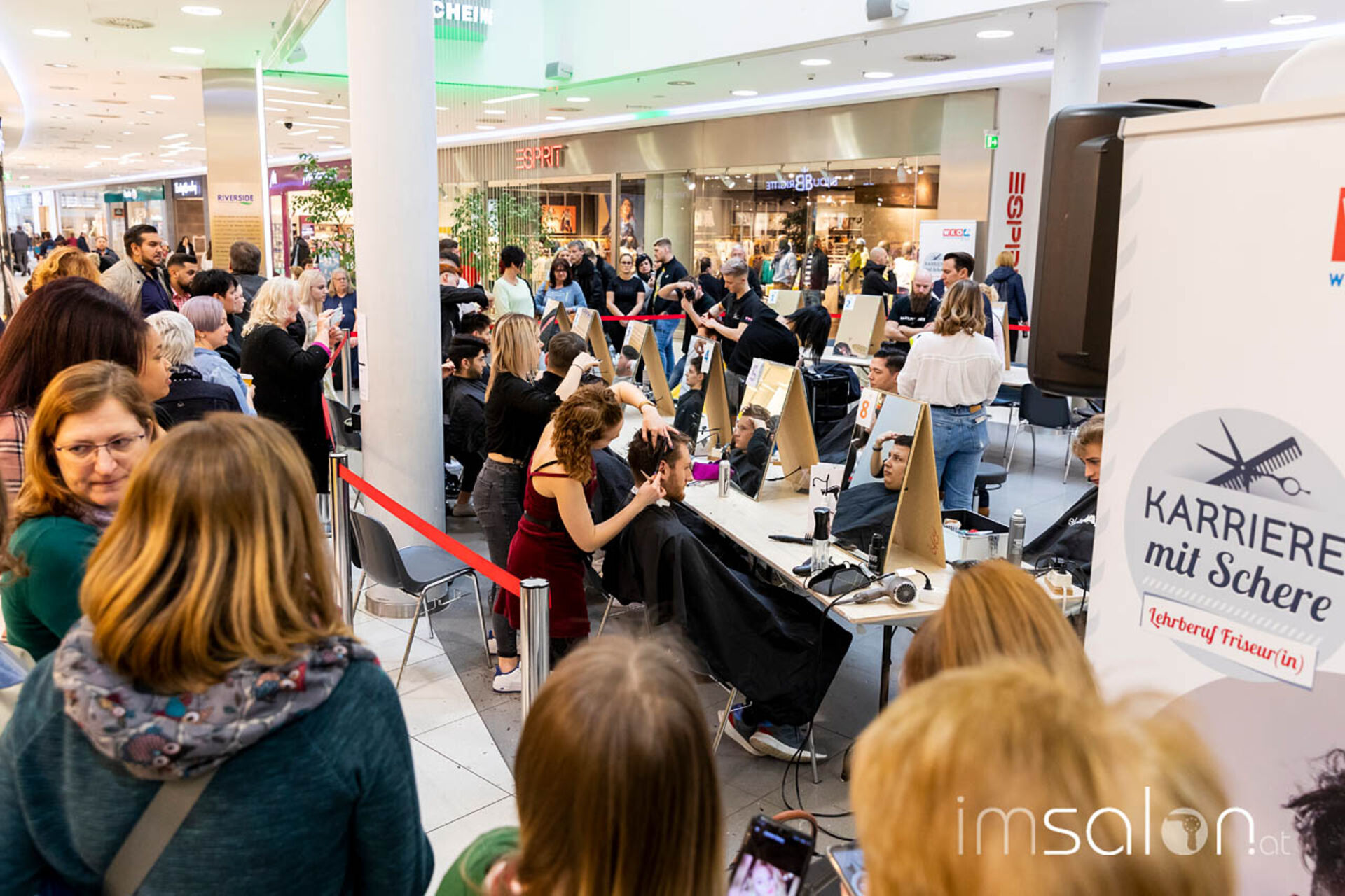 Neben Familie, Freunden, Salonteams fanden sich auch immer wieder Kunden des Einkaufszentrums ein, um den preisfrisierenden Nachwuchstalenten zuzuschauen. Die Idee, dem Lehrlingswettbewerb eine öffentlich zugängliche Plattform zu bieten und die Branche einen Tag lang für ein breites Publikum in den Fokus zu rücken, ging damit auf.