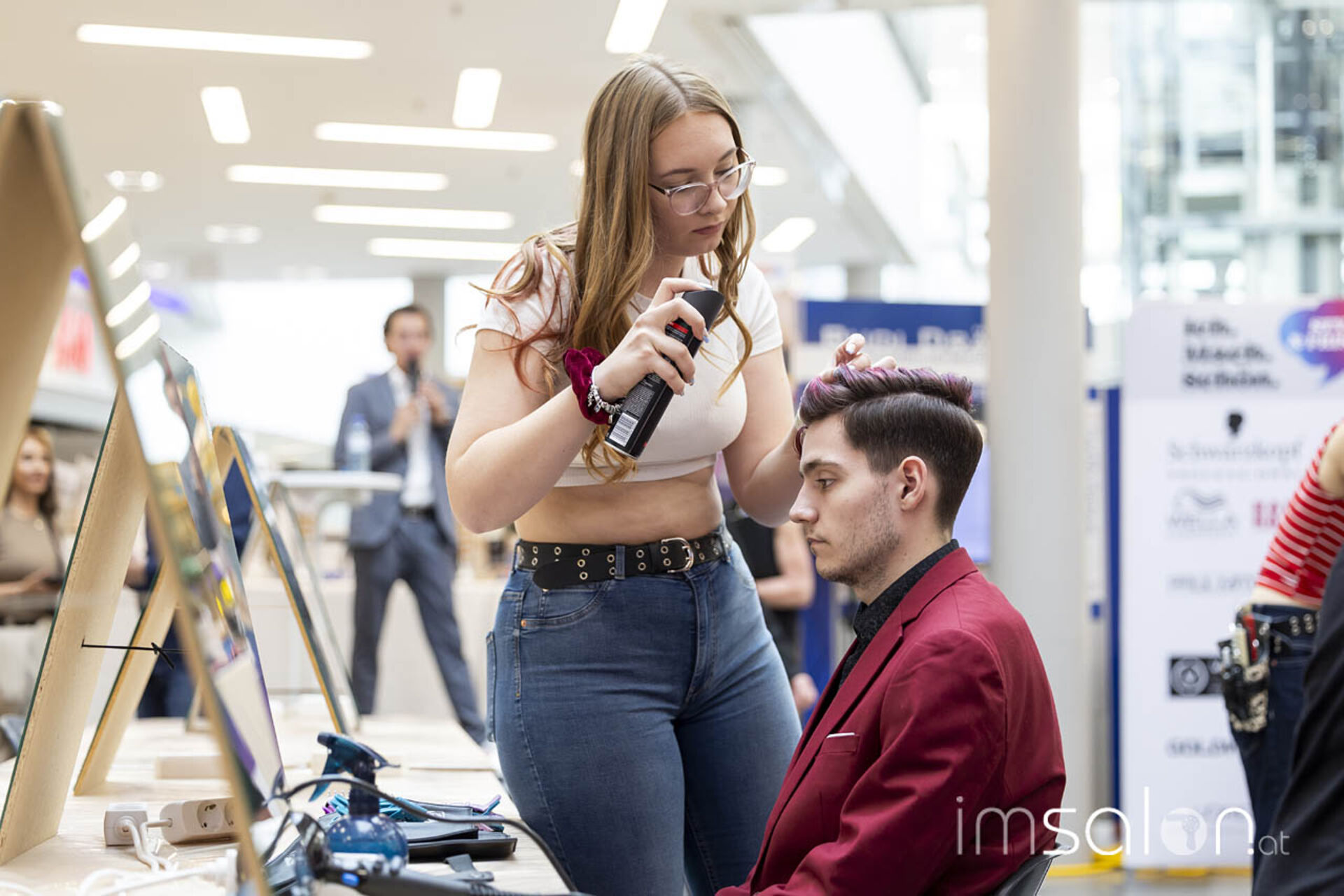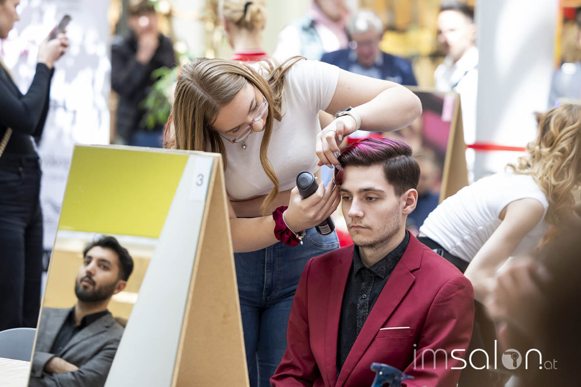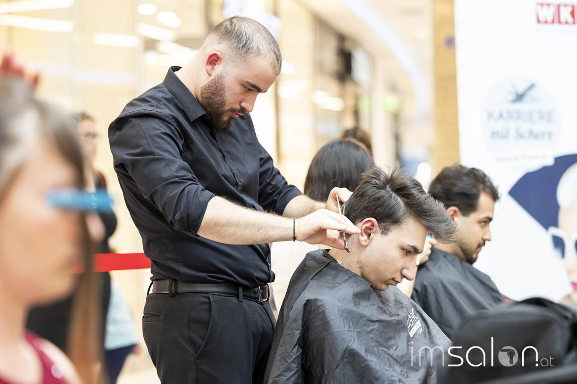 Der Landeslehrlingswettbewerb der Wiener Friseurlehrlinge fand in diesem Jahr wieder im EKZ Riverside statt, das KommR. Peter Schaider, selbst erfahren im Preisfrisieren und seit März stellvertretender Landesinnungsmeister in Wien, dem Friseurnachwuchs zur Verfügung stellte. Shoppende Endkonsumenten konnten so stehen bleiben und miterleben, welche Frisuren die Friseurlehrlinge hoch konzentriert kreierten.
