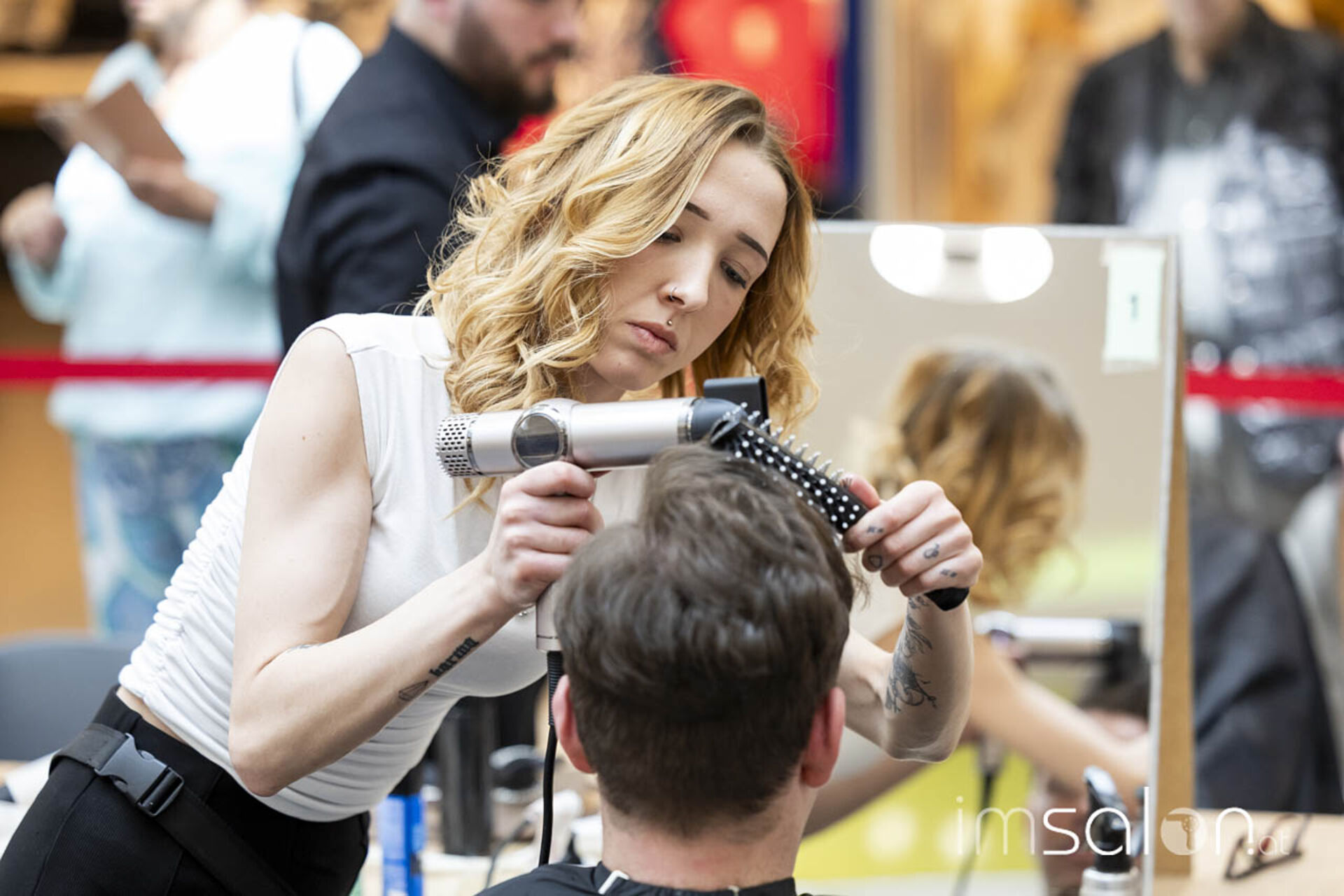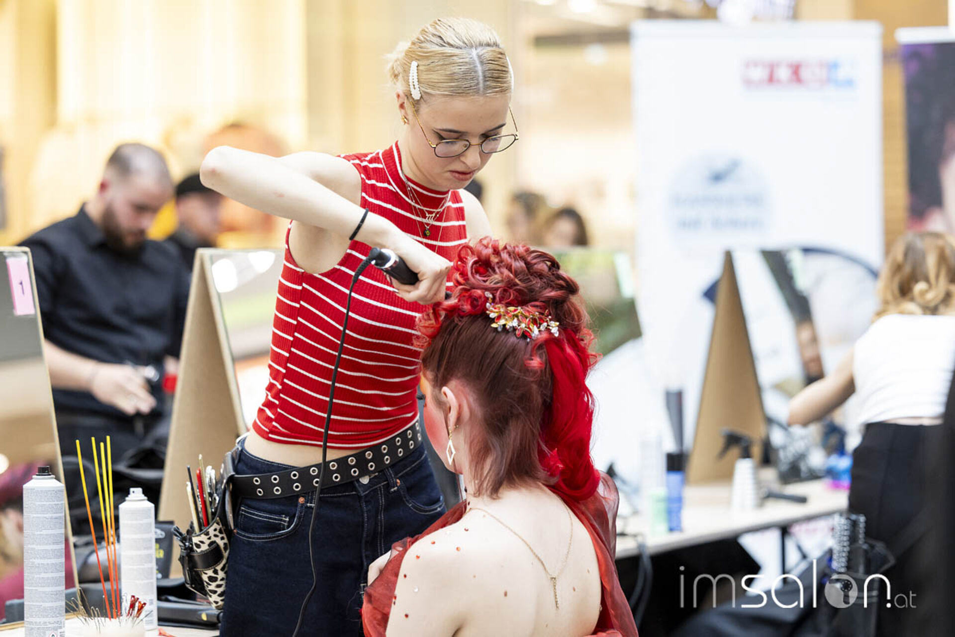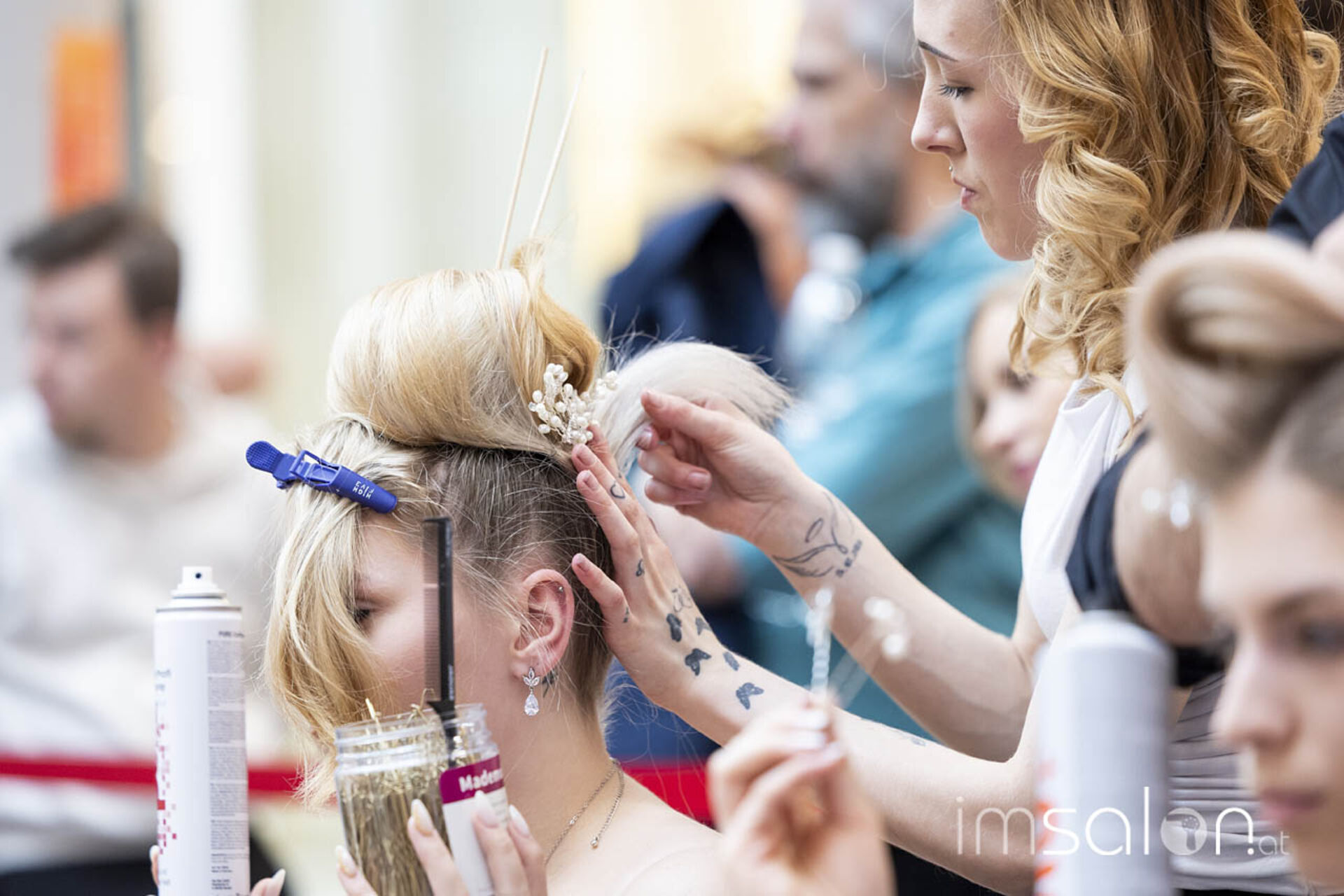 Der Landeslehrlingswettbewerb der Wiener Friseurlehrlinge fand in diesem Jahr wieder im EKZ Riverside statt, das KommR. Peter Schaider, selbst erfahren im Preisfrisieren und seit März stellvertretender Landesinnungsmeister in Wien, dem Friseurnachwuchs zur Verfügung stellte. Shoppende Endkonsumenten konnten so stehen bleiben und miterleben, welche Frisuren die Friseurlehrlinge hoch konzentriert kreierten.