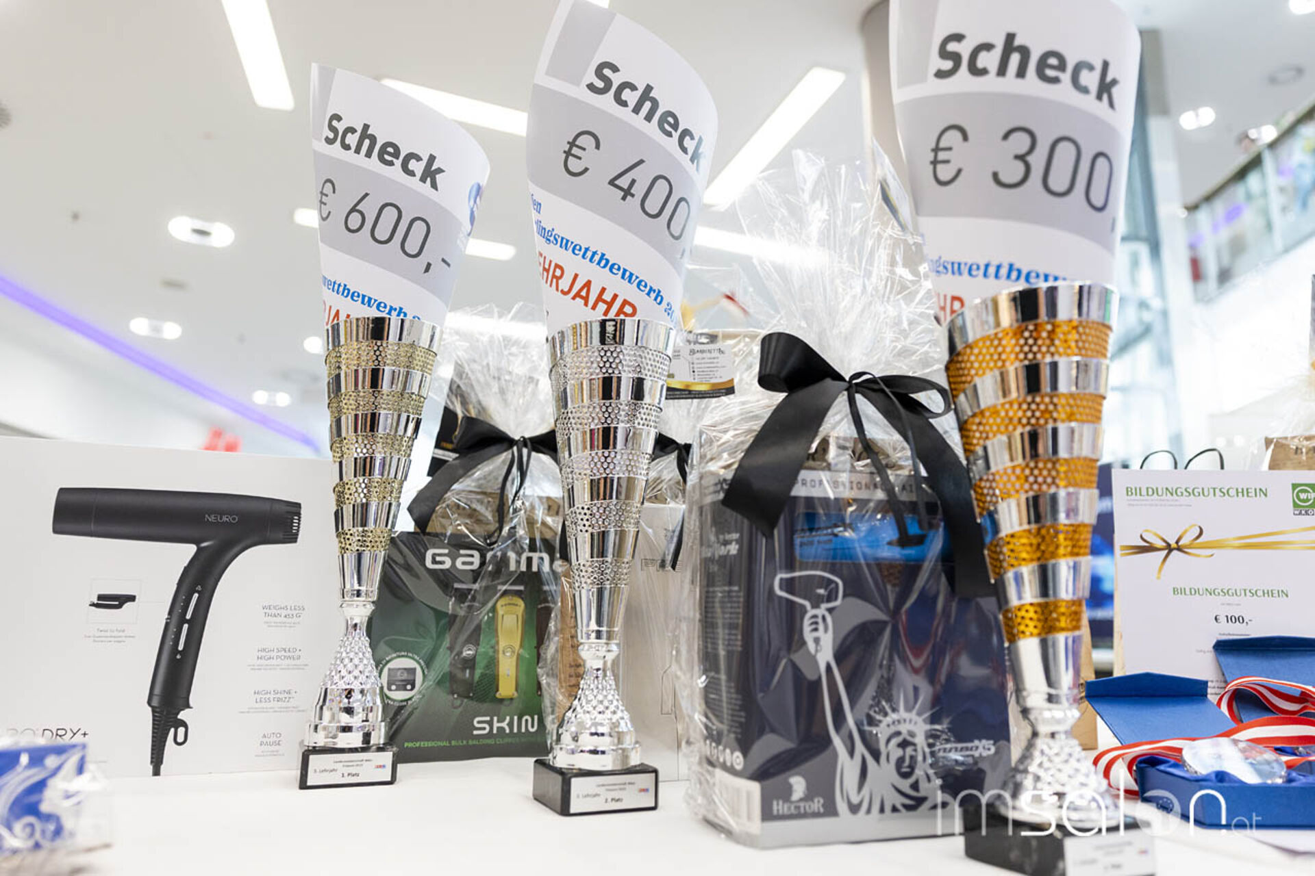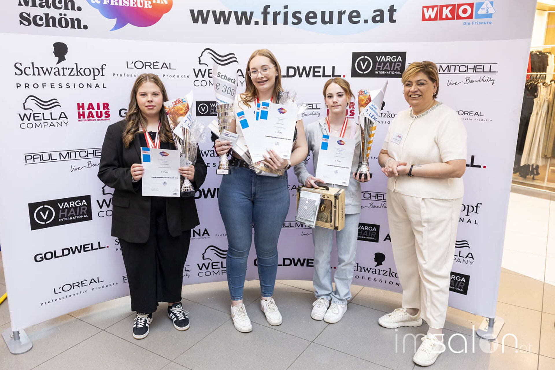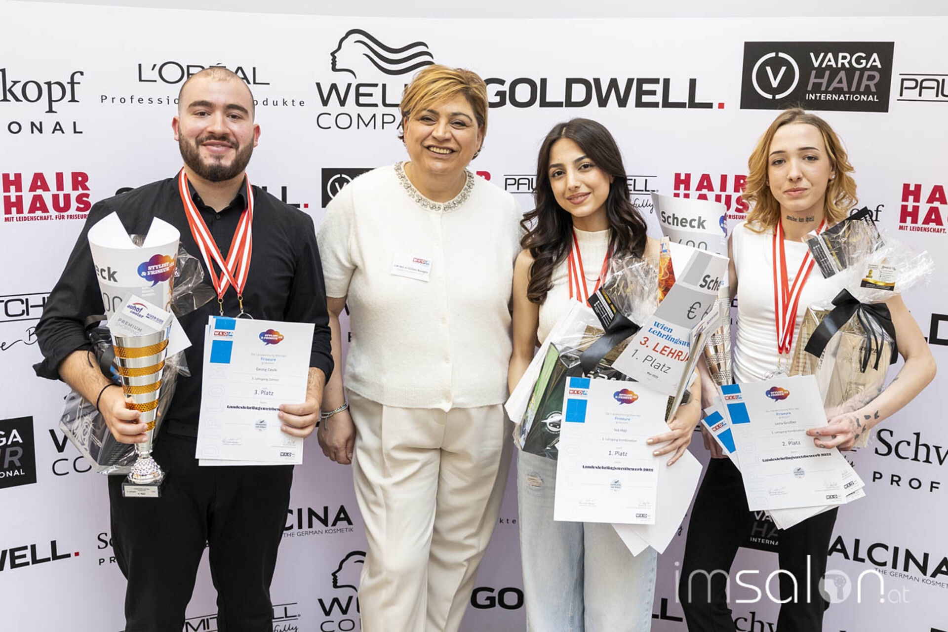 Jubeln durften die Lehrlinge nicht nur aufgrund ihrer Leistung, sondern auch Dank der Siegesprämien und Goodies. Die Erstplatzierten konnten sich über 300, 400 und 600 € freuen, zudem gab es Ausbildungsgutscheine vom WIFI Wien und Produktpakete von Paul Mitchell und Banditos.