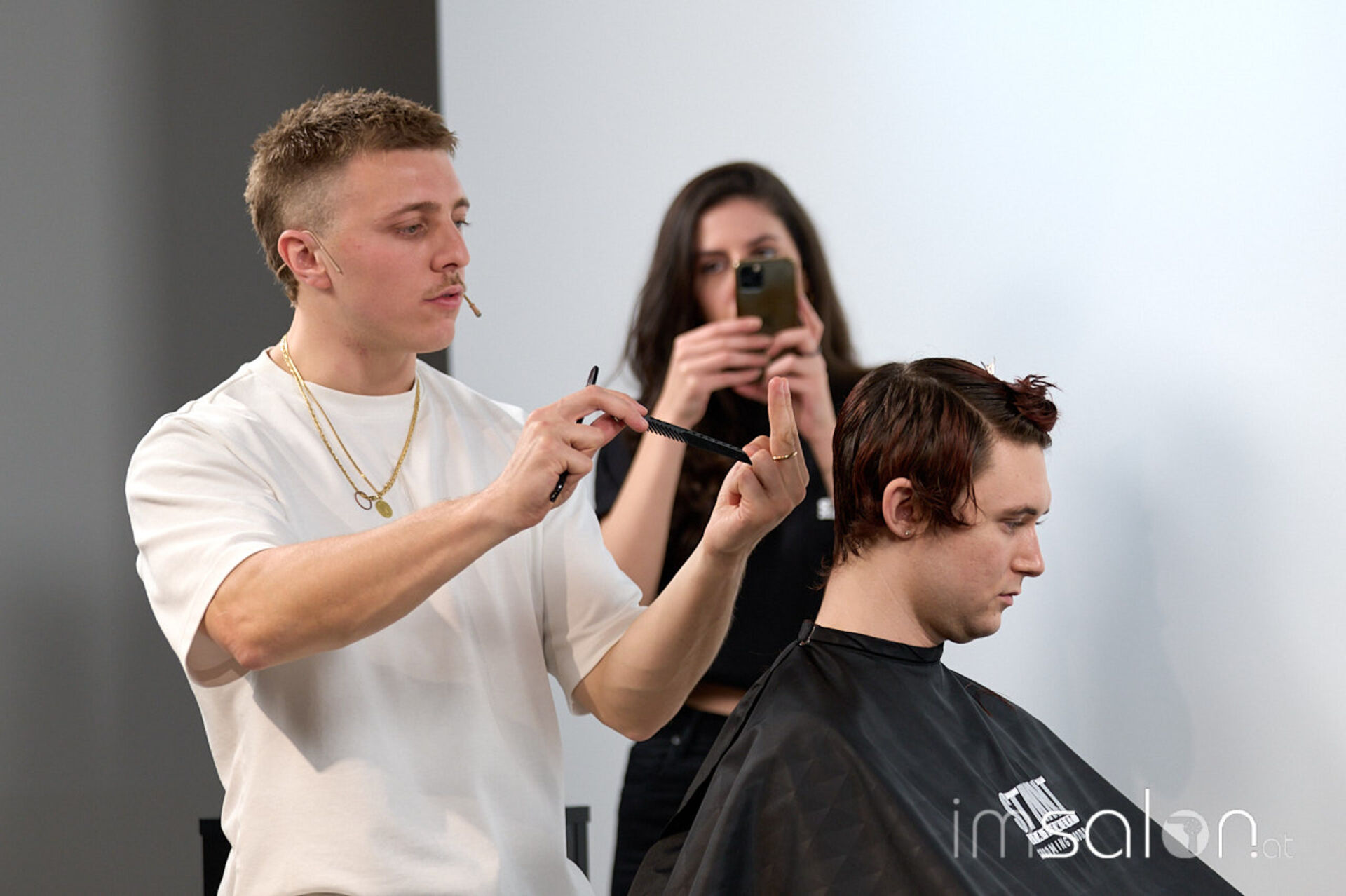 Für Bianca Kroupa (STMNT Grooming Goods) eine Selbstverständlichkeit: „Andrea vereint das Beste aus beiden Barber-Welten, für die die Marke STMNT steht. Zum einen die Präzisionsschnitte aus der UK Schule, die er selbst auch lebt, und zum anderen das Smoothfading aus den USA.“