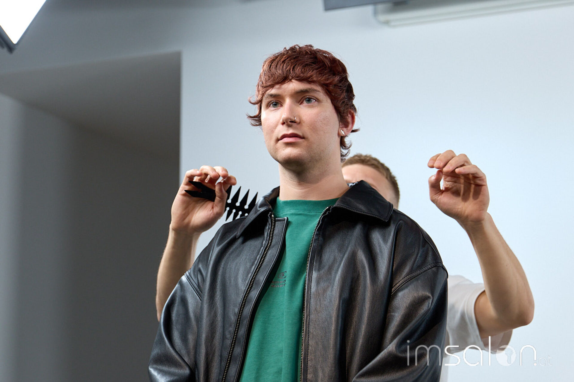 Beim Community Event erarbeitet Andrea Amighetti an drei Modellen drei Haarschnitte: einen Mod Haircut, einen Wolf-Cut, den er eher artistisch interpretiert, und einen Haarschnitt aus der typischen News-School Fading Richtung.