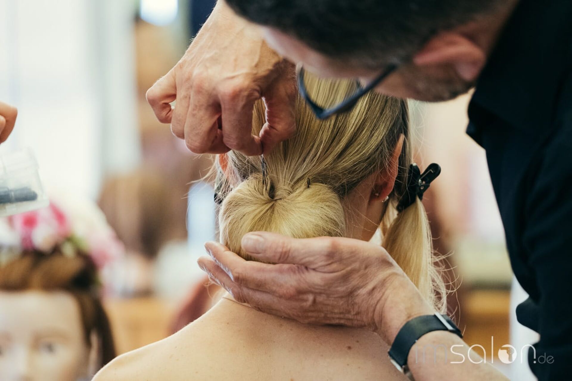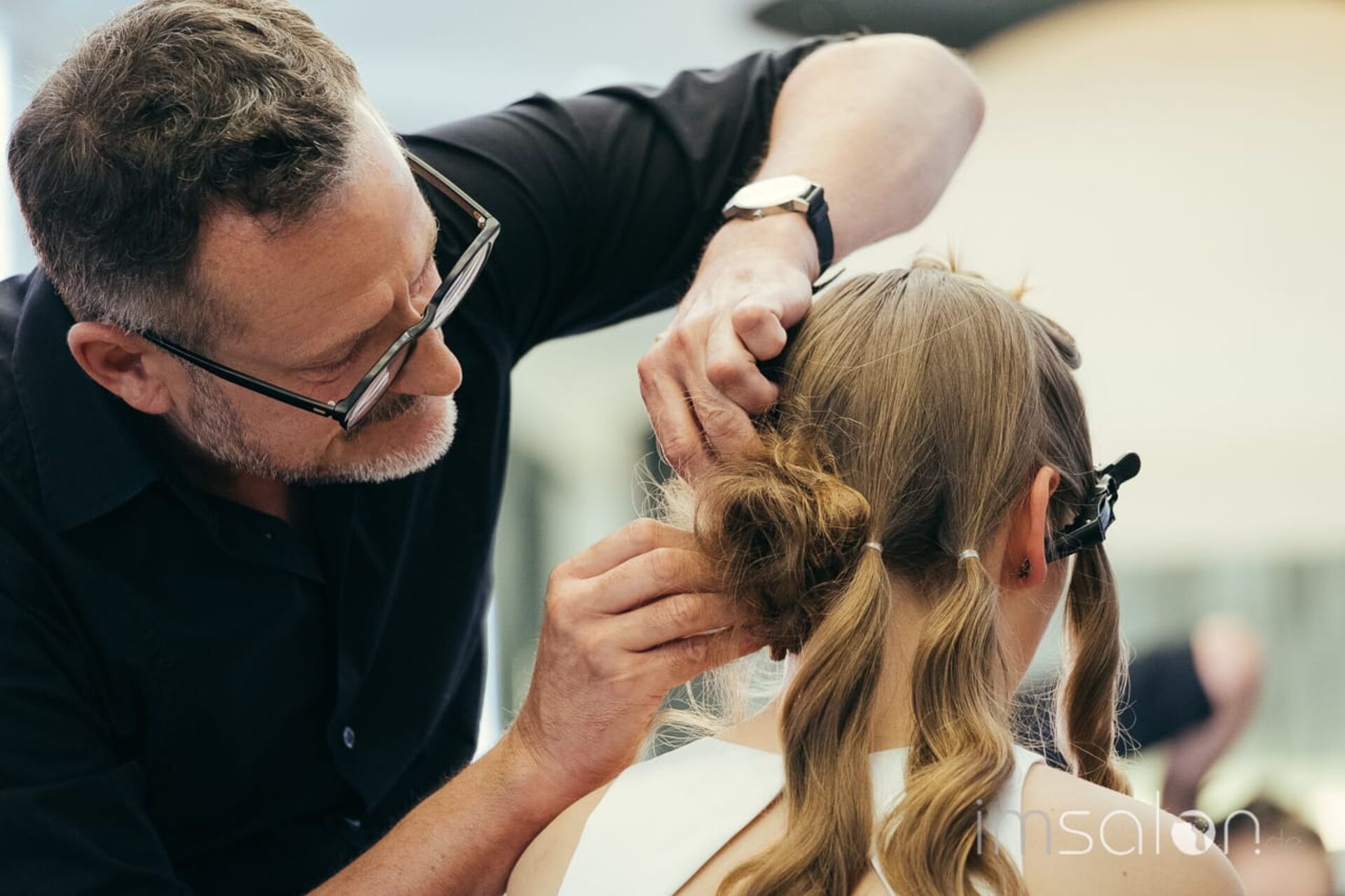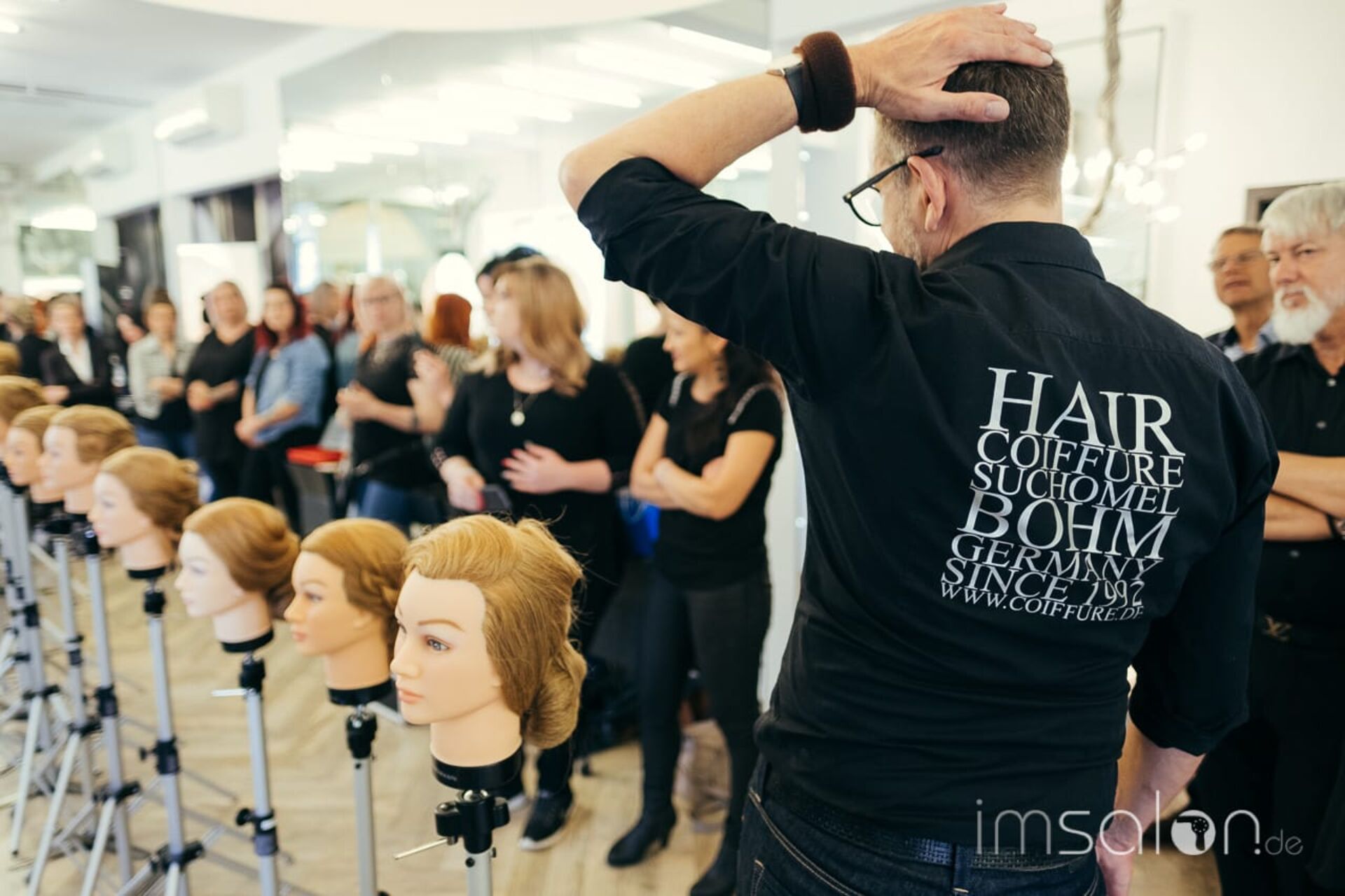 In seinem Dresdner Salon Coiffure Suchomel & Bohm, den er gemeinsam mit Frank Bohm führt, empfängt er um die 20 Friseure zu einem Upgrade in Sachen Hochzeit, Ball & Co. Auf dem Schulungsplan: ESTEL's Longhair.Master. Ein lehrreiches Seminar mit 3 frischen UpDo´s, die im Look&Learn präsentiert und anschließend hautnah an Trainingsköpfen umgesetzt werden.