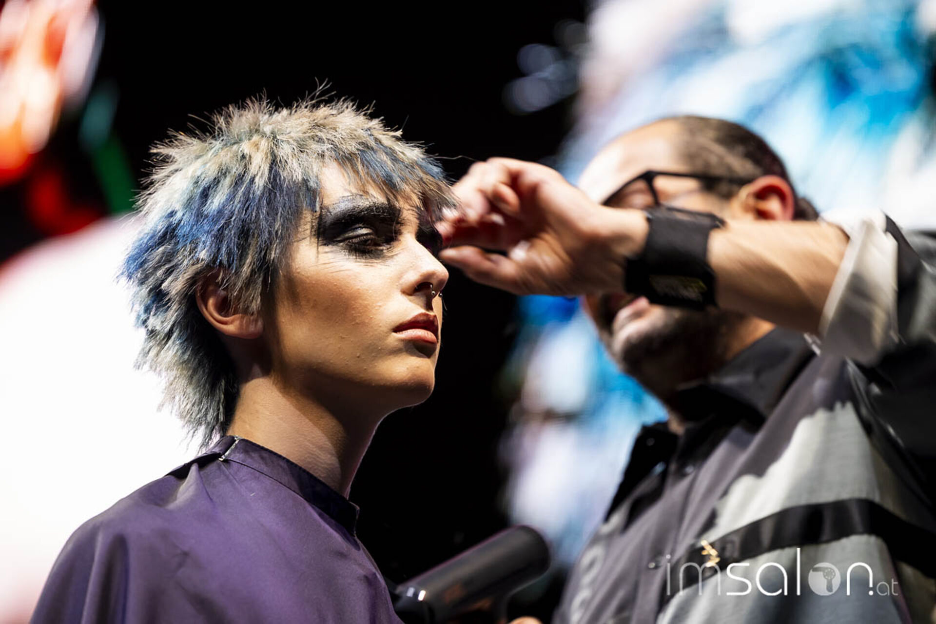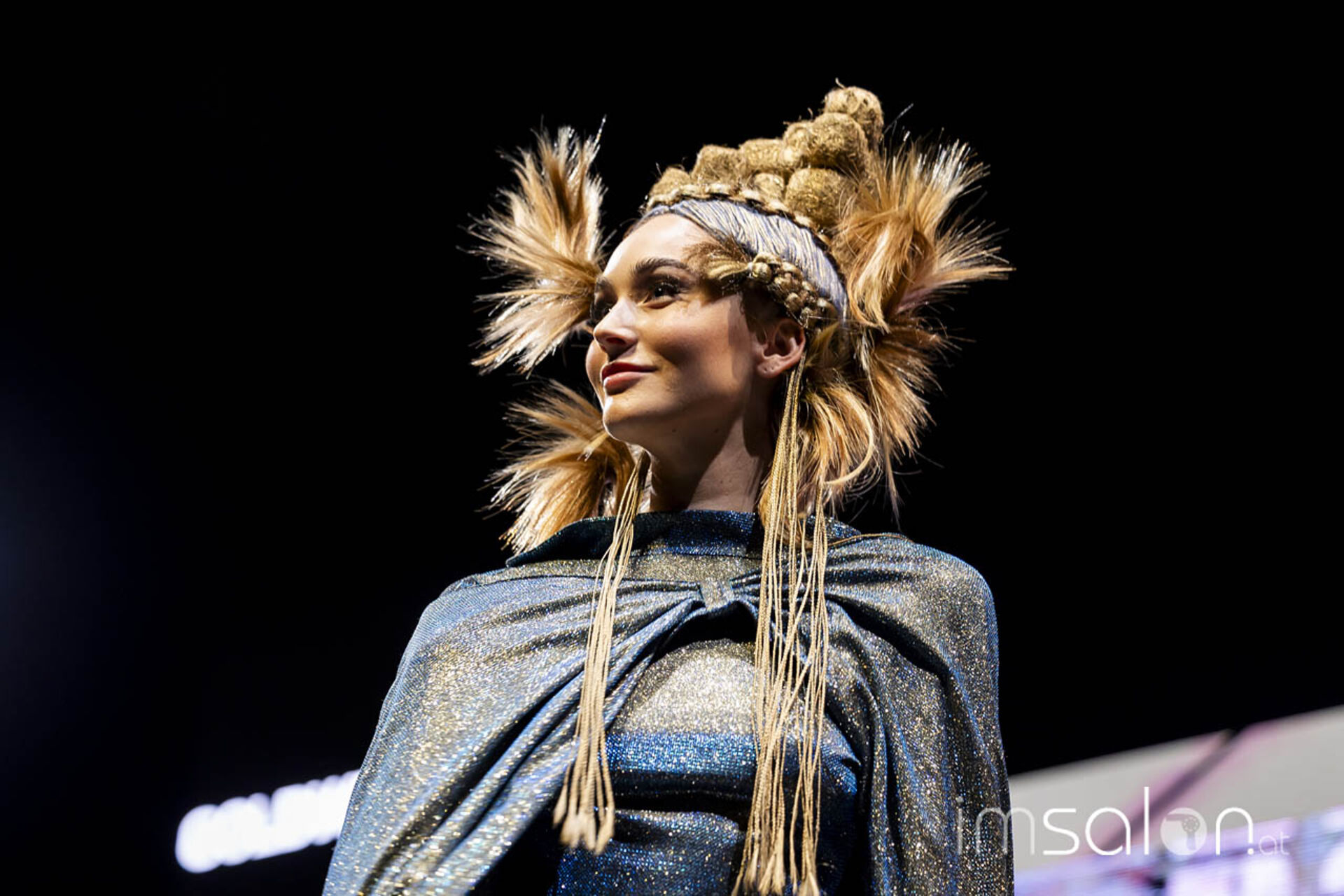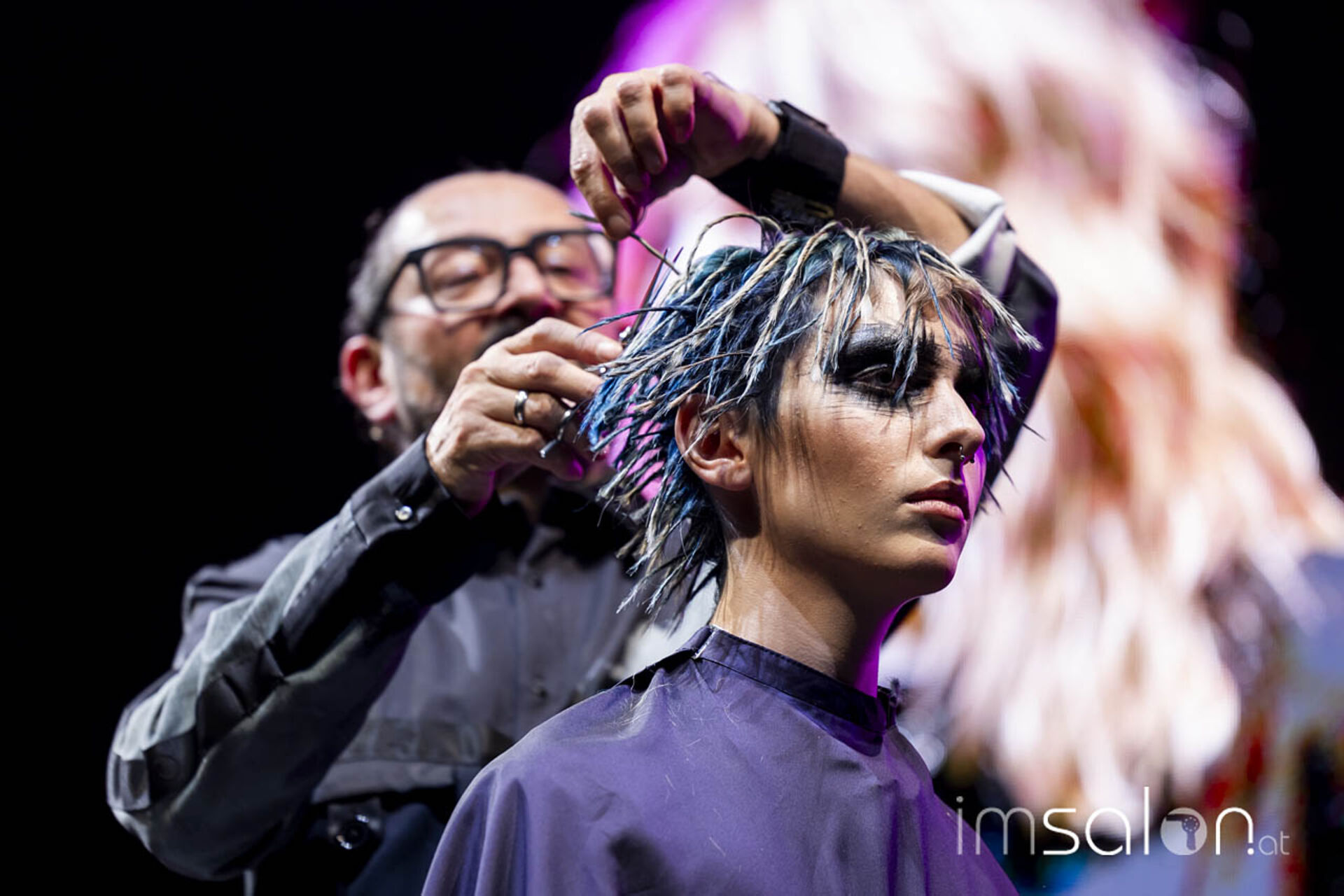 Eine Performance jagt die andere, wenn Mario Krankl auf der Bühne steht. Unter dem Motto „75 years of Goldwell“ ließ Mario Krankl die Gäste das „House of Hair“ entdecken. Dabei begegnet man Ballett-Tänzerinnen mit coolen Perückenlooks und futuristischen Haar-Helmen, und wenn Mario Krankl selbst die Bühne betritt, wartet er mit Schnitttechniken auf, die davor noch nicht gesehen wurden. Anna Seidl unterstützte Mario Krankl bei den Modellen in puncto Farbe – auch sie setzte für die Bühnen-Looks auf quadratische Abteilungen für spannende Ergebnisse.