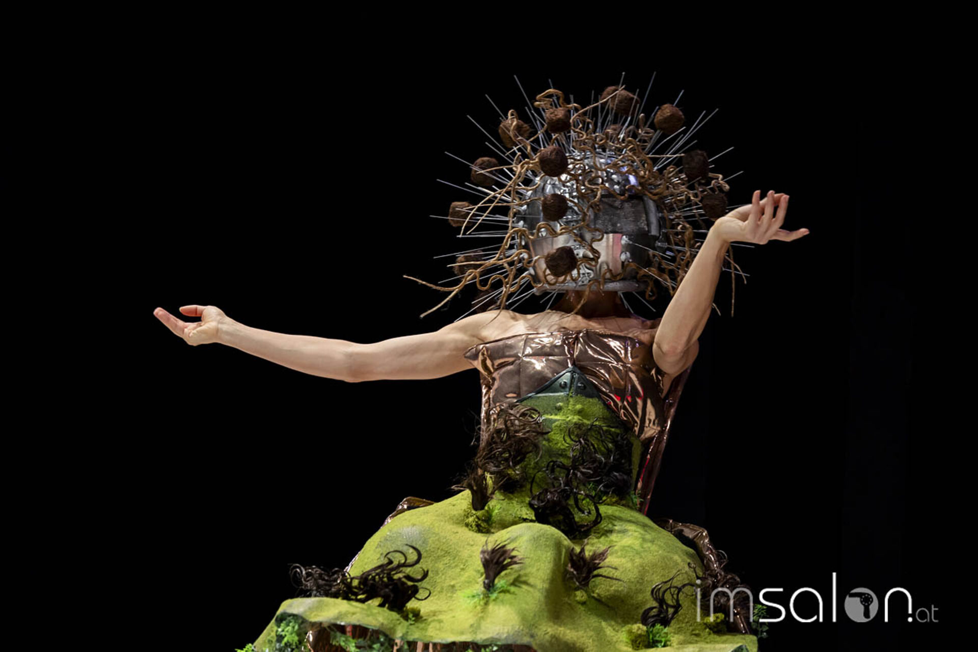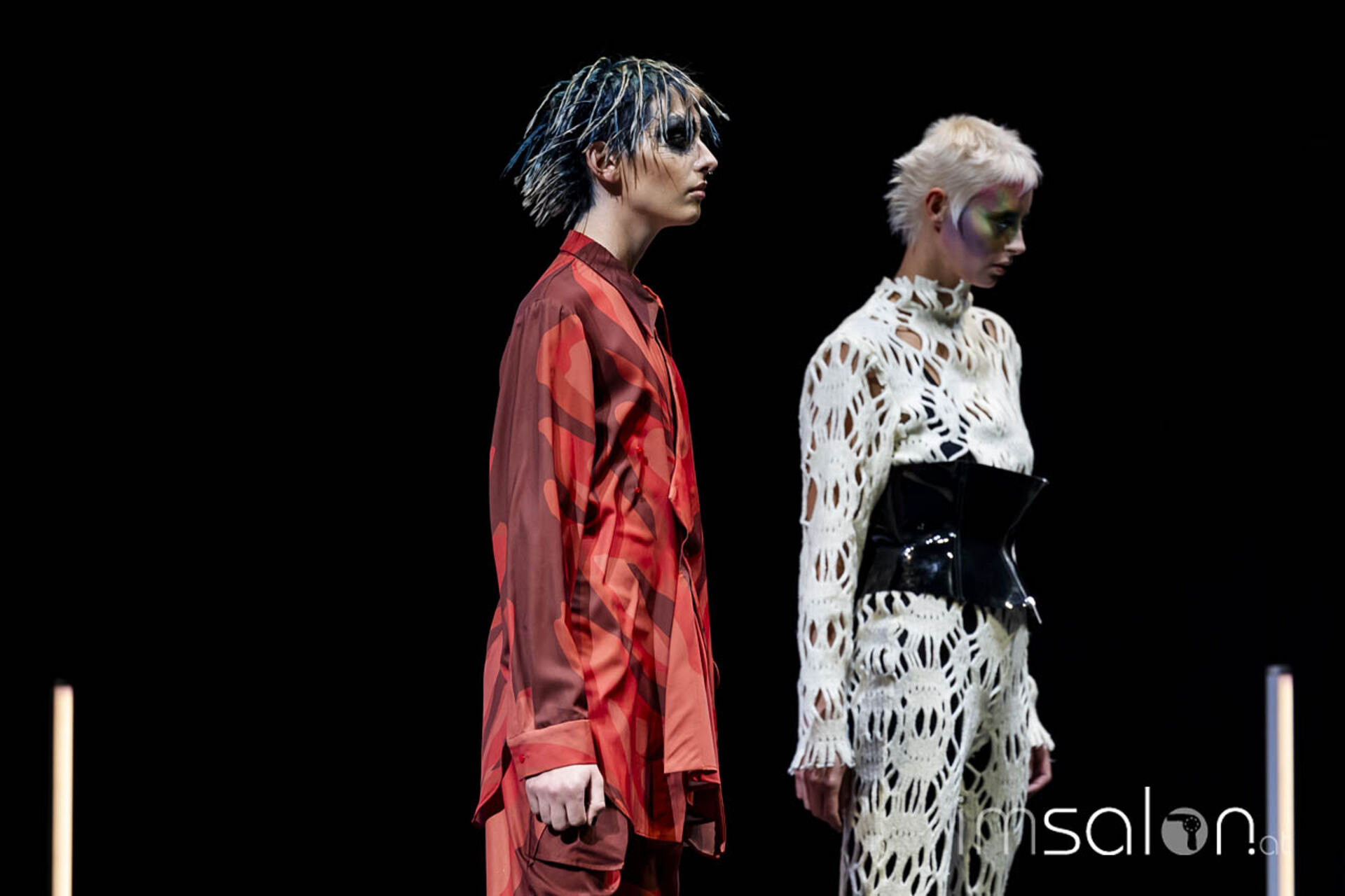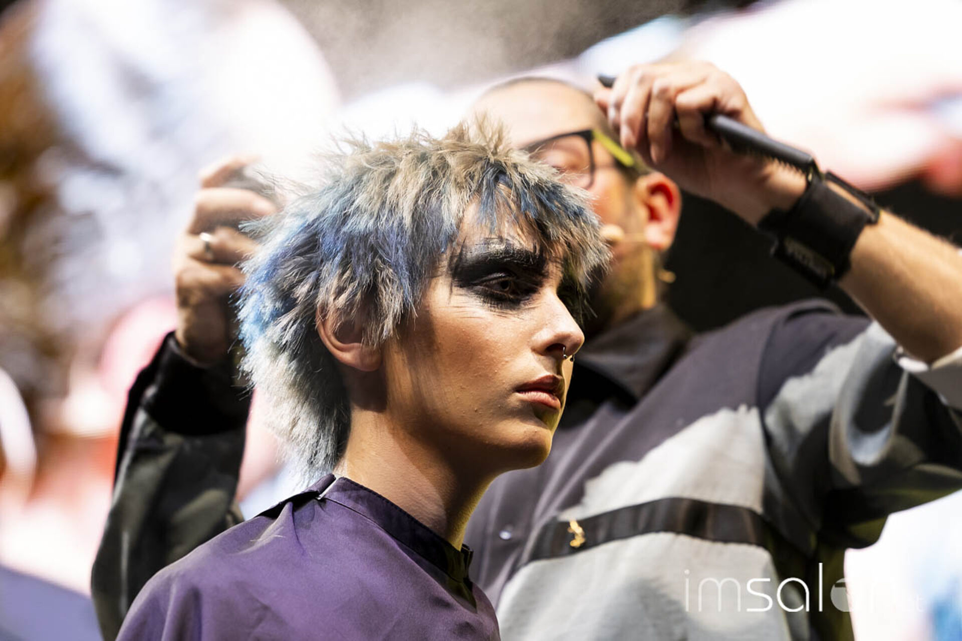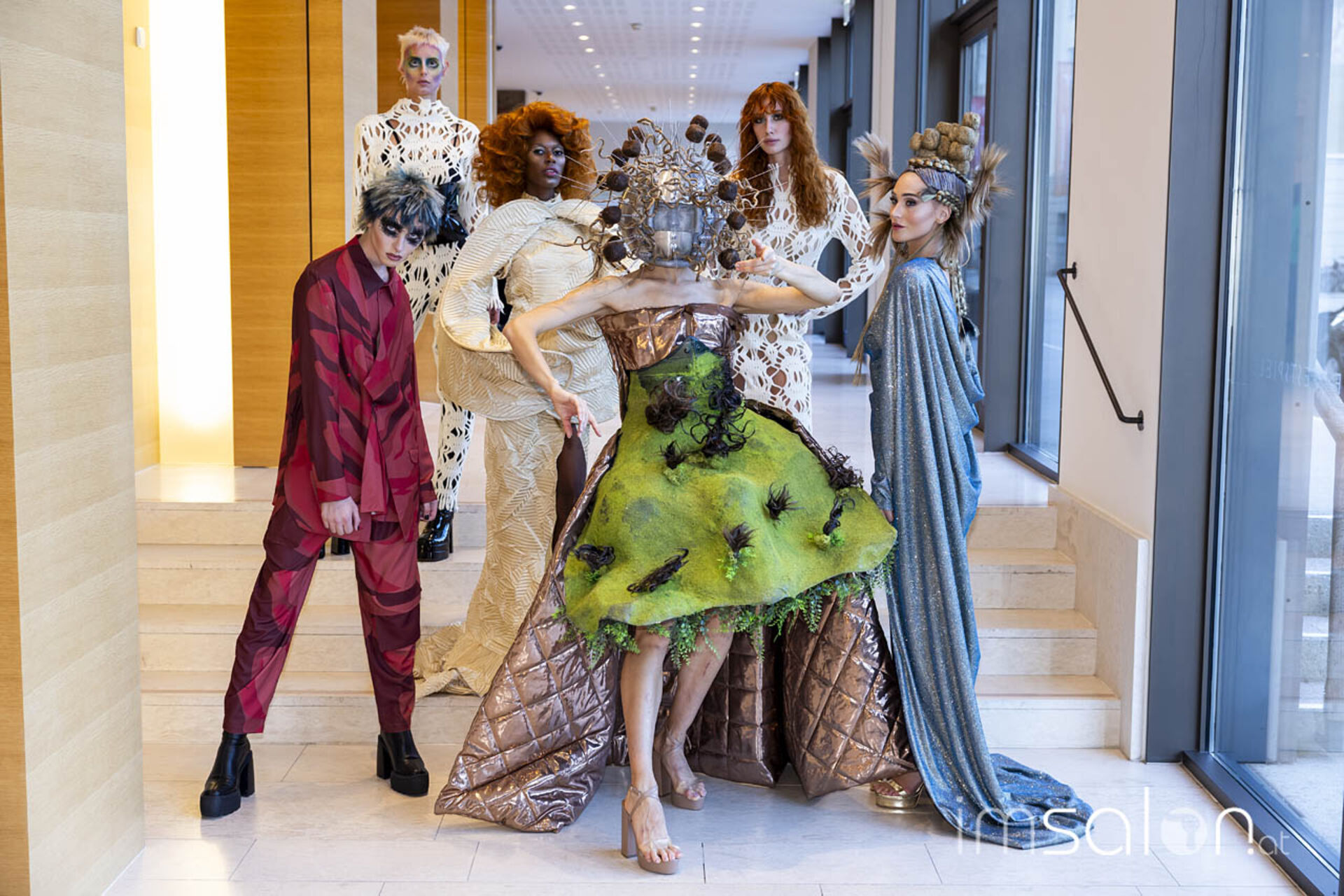 Eine Performance jagt die andere, wenn Mario Krankl auf der Bühne steht. Unter dem Motto „75 years of Goldwell“ ließ Mario Krankl die Gäste das „House of Hair“ entdecken. Dabei begegnet man Ballett-Tänzerinnen mit coolen Perückenlooks und futuristischen Haar-Helmen, und wenn Mario Krankl selbst die Bühne betritt, wartet er mit Schnitttechniken auf, die davor noch nicht gesehen wurden. Anna Seidl unterstützte Mario Krankl bei den Modellen in puncto Farbe – auch sie setzte für die Bühnen-Looks auf quadratische Abteilungen für spannende Ergebnisse.