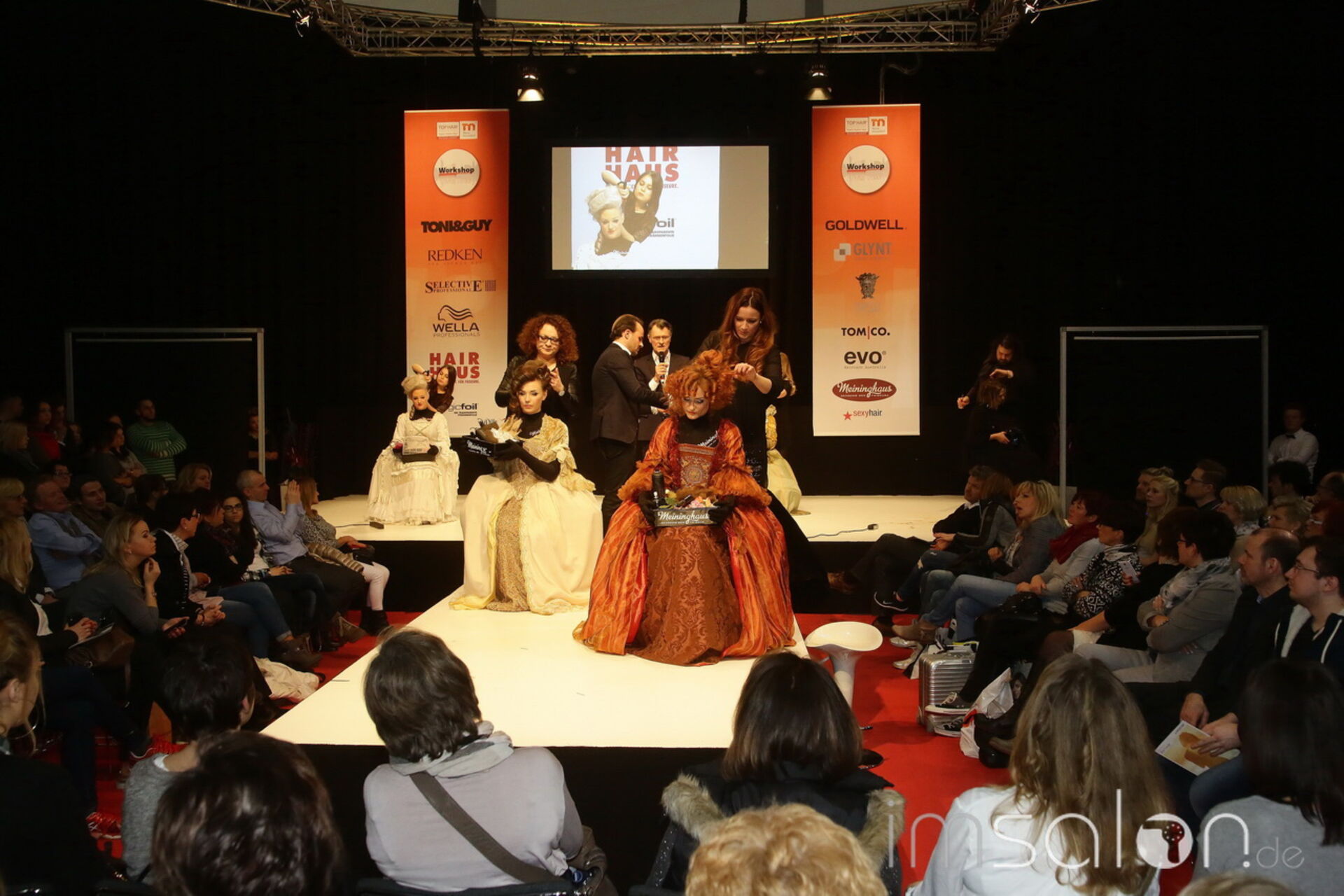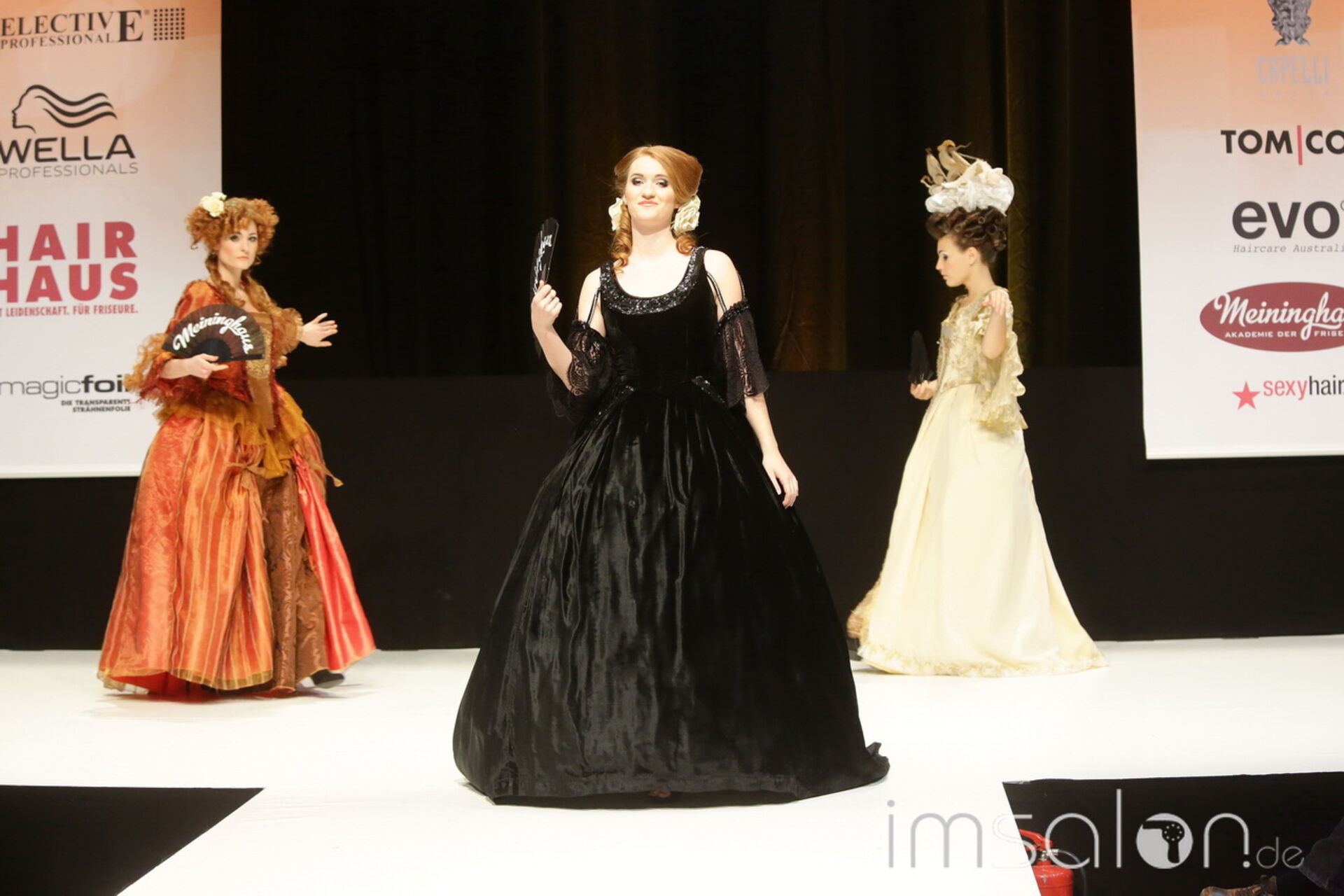 Mit historisch-barockem Start und einem Abstecher in die Swinging Sixties landete die Frisuerakademie Meininghaus schließlich in bei aktuellen Stylings.