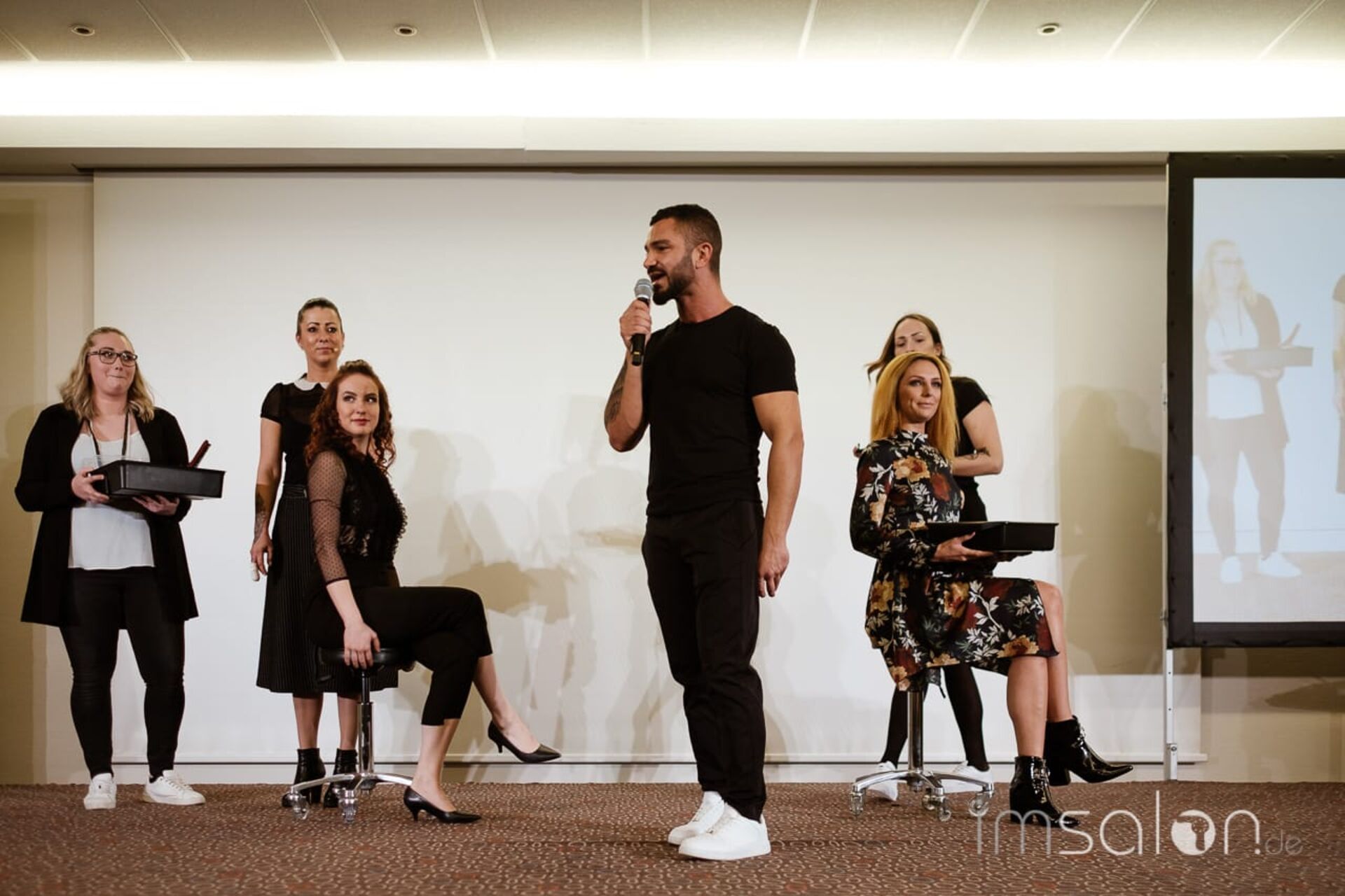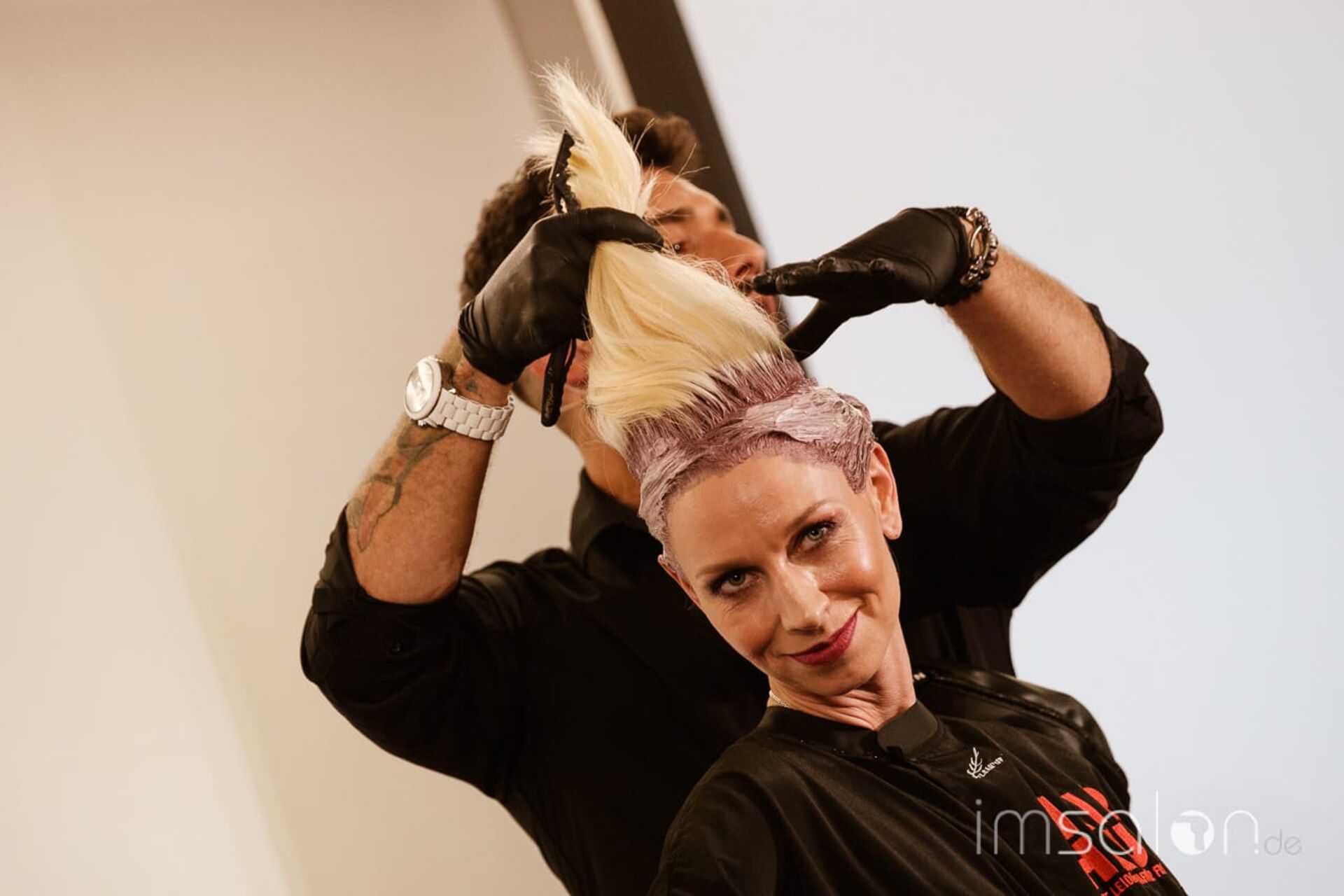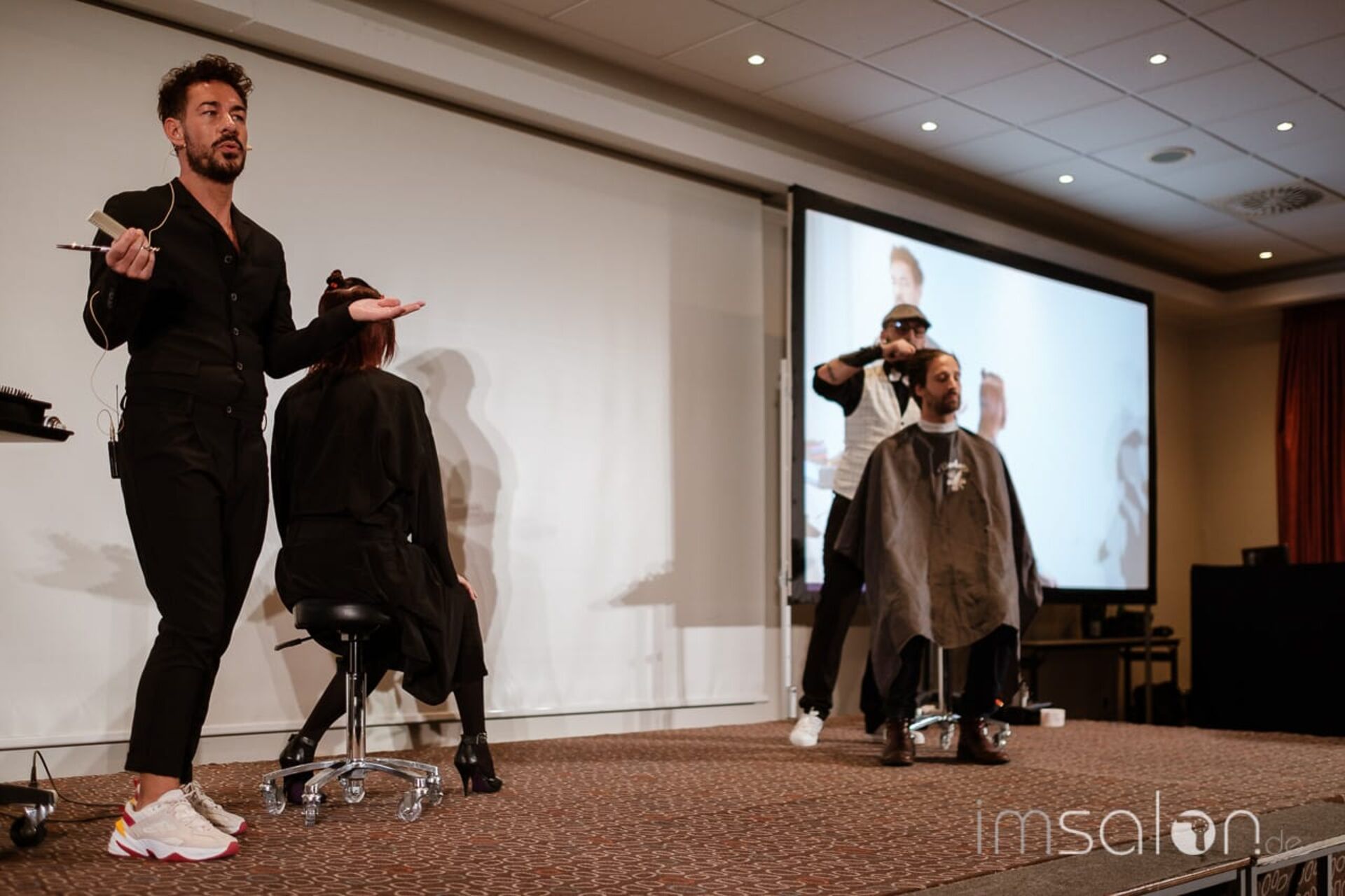 Auf der Bühne schnitten, stylten, färbten: