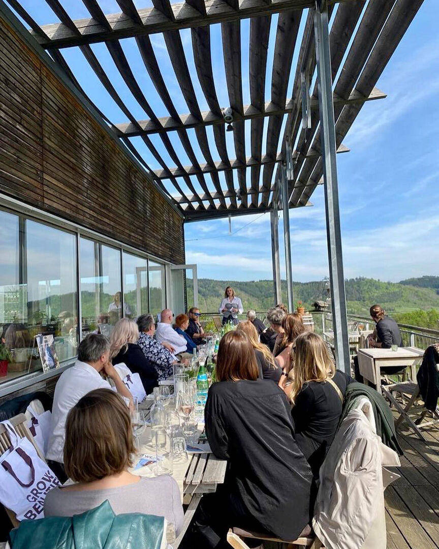 Regionale Köstlichkeiten, feine Weine aus nachhaltigem Anbau und das wunderbare Ambiente in den sonnigen Weinbergen sorgten für gute Stimmung bei den Gästen. Einblicke in Produktionsweisen von Davines, Inhaltsstoffe und gelebte Ethik boten viel Gesprächsstoff und bildeten die Basis für einen zukunftsorientierten Austausch über Nachhaltigkeit und gewissenhaften Ressourcenverbrauch.
