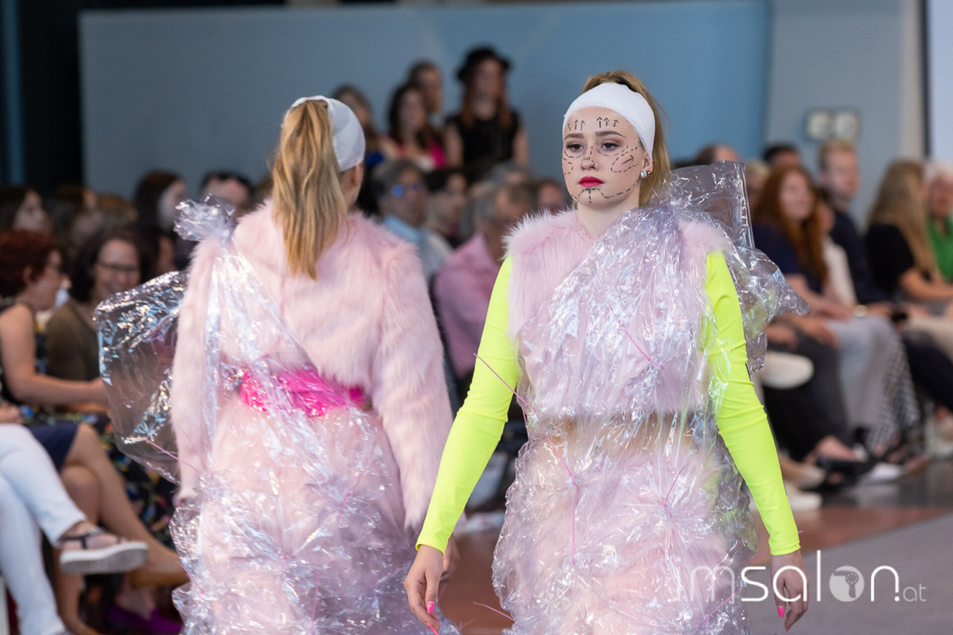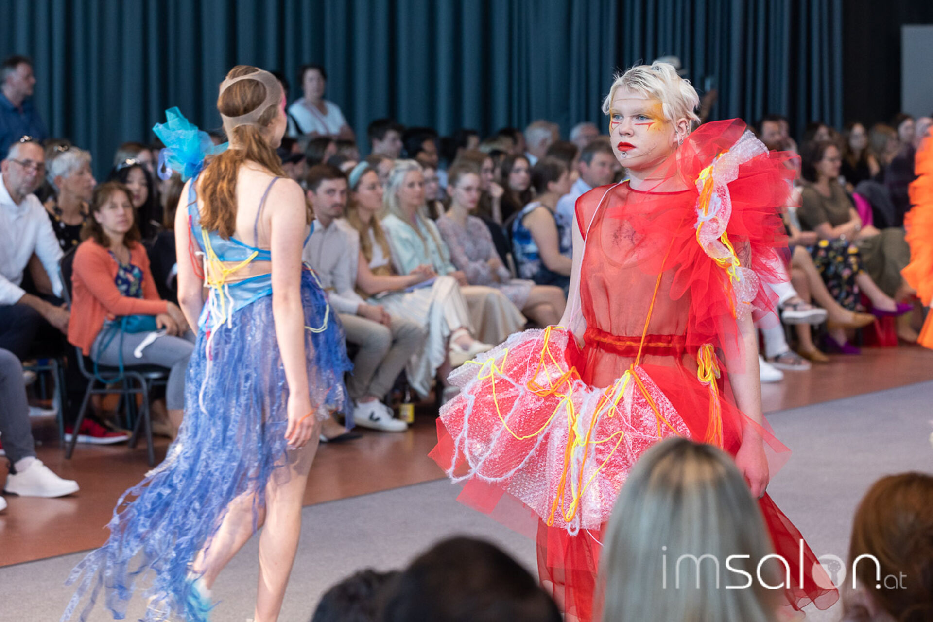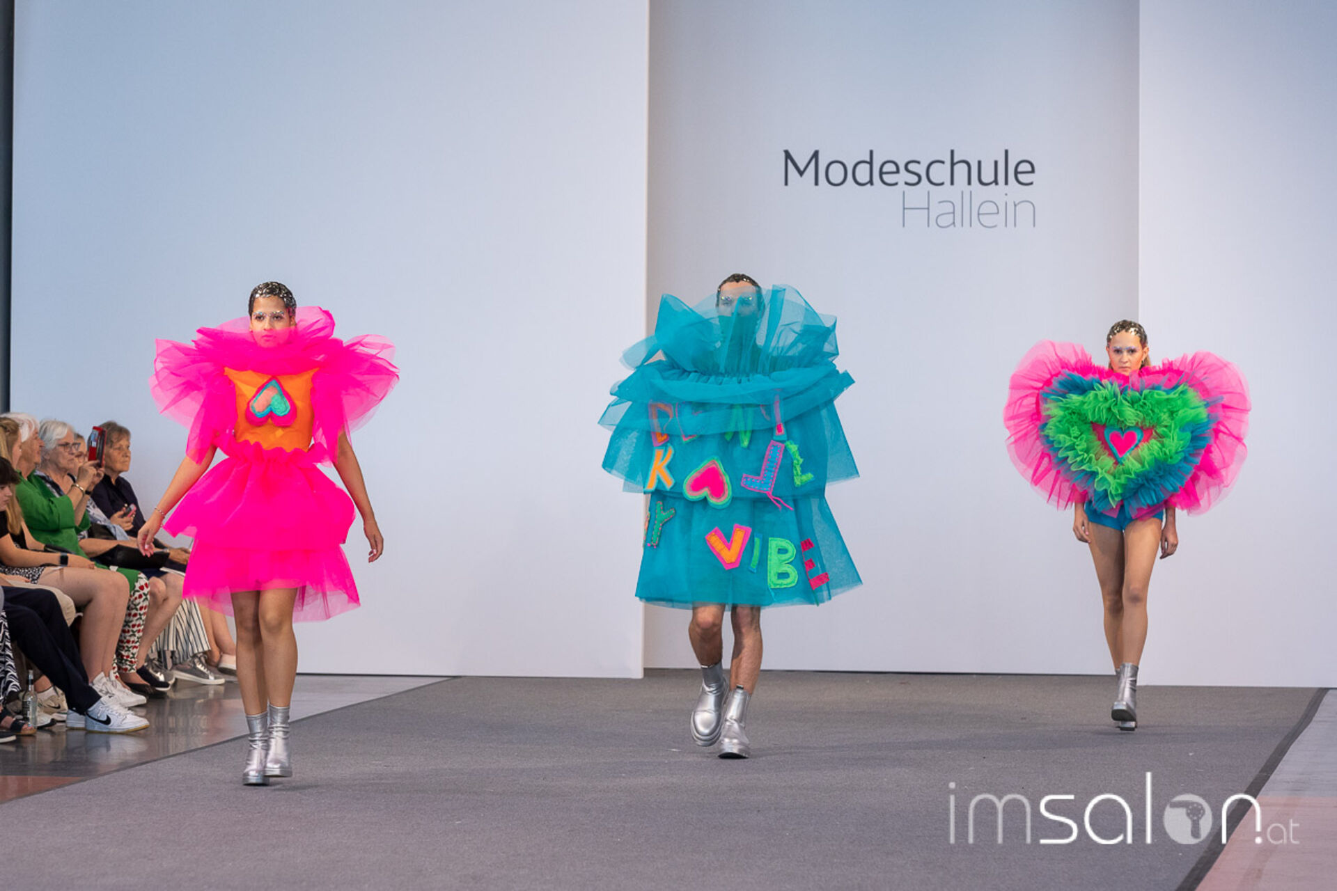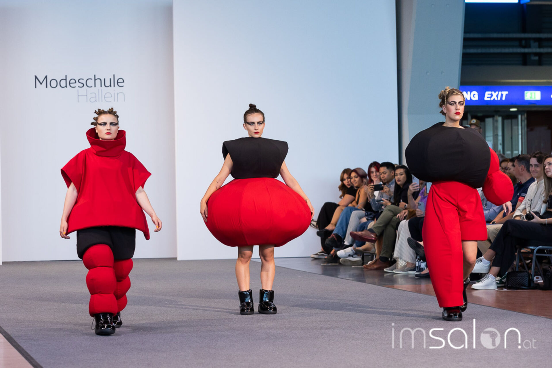 Bei der großen Fashion Show im Terminal 2 des Salzburger Flughafens präsentierten die Nachwuchsdesigner*innen der Modeschule Hallein ihre Kollektionen. Dabei wurden sie von den Schüerinnen und Schülern des Hairstylung, Make-up & Visagisten Zweiges unterstützt, die das gesamte Styling der Modelle von der Frisur bis zum Make-up übernahmen.