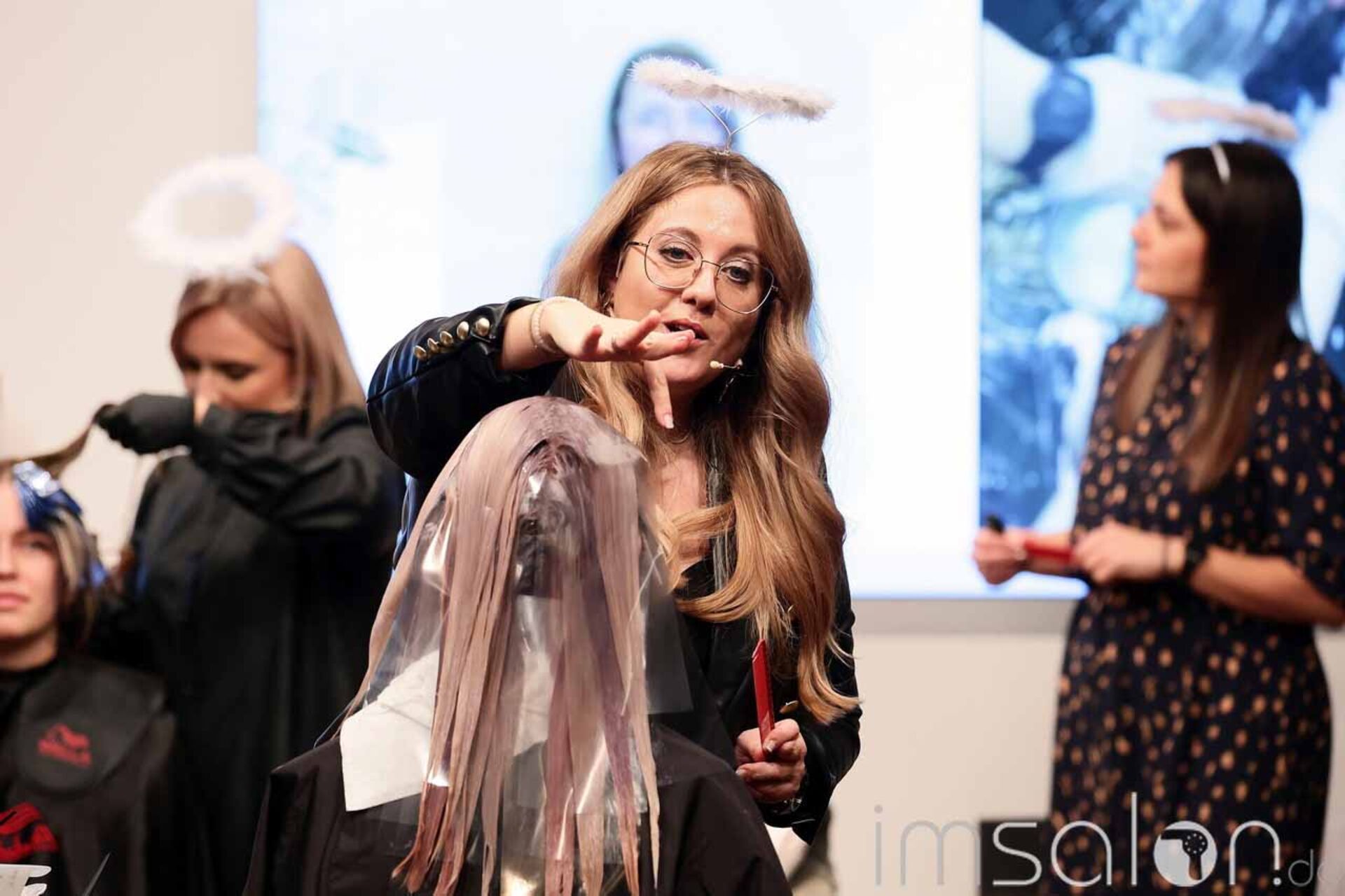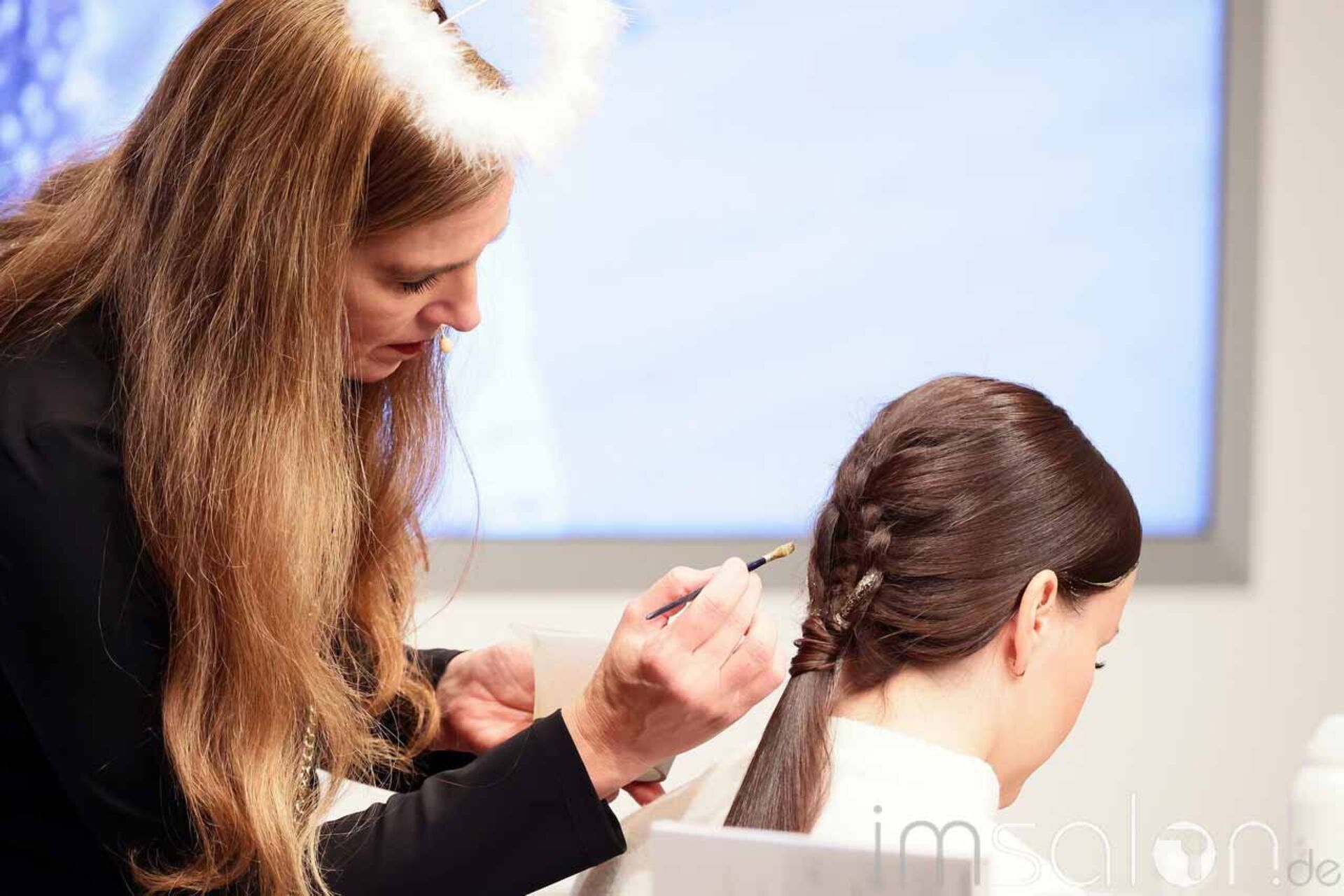 Glaze & Care waren das große Thema; u.a. Shinefinity, Illumina und Blondorplex sowie Faceframing und Freihand zeichnen die Anwendungen, die die Looks mit harmonischen Farbverläufen und individuell abgestimmten, vielfältigen Farbschattierungen ermöglichen. Silber und Goldsträhnen im Haar sorgen für den finalen Christmas-Touch – gepinselt mit Glitzerpuder aus dem Bastelbedarf und vermischt mit Sculp Force vom EIMI.
