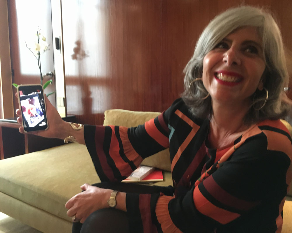 Ich bin bereits mit 18 Jahren grau geworden. Wissen Sie, als ich 18 war, hat man noch nicht die Haare gefärbt, also ich bin aufgewachsen mit meinen grauen Haaren und nicht einfach dadurch gealtert. Heute bin ich super im Trend.