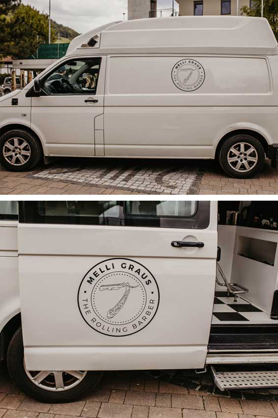 Nach fünf Jahren Salonleitung in einem Barber-Shop in Innsbruck und drei Jahren in der mobilen Selbstständigkeit, entschied sich Melanie Graus, ihre Vision „The Rolling Barber“ zu verwirklichen. Nun tourt die Jungmutter wochentags im eigens entworfenen Barberbus und bietet an fixen Standplätzen in zwei Tiroler Ortschaften bzw. vor Privathäusern ihre Friseurdienstleistungen an.
