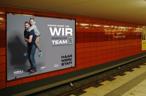 Haarwerkstatt plakatiert Mitarbeitersuche