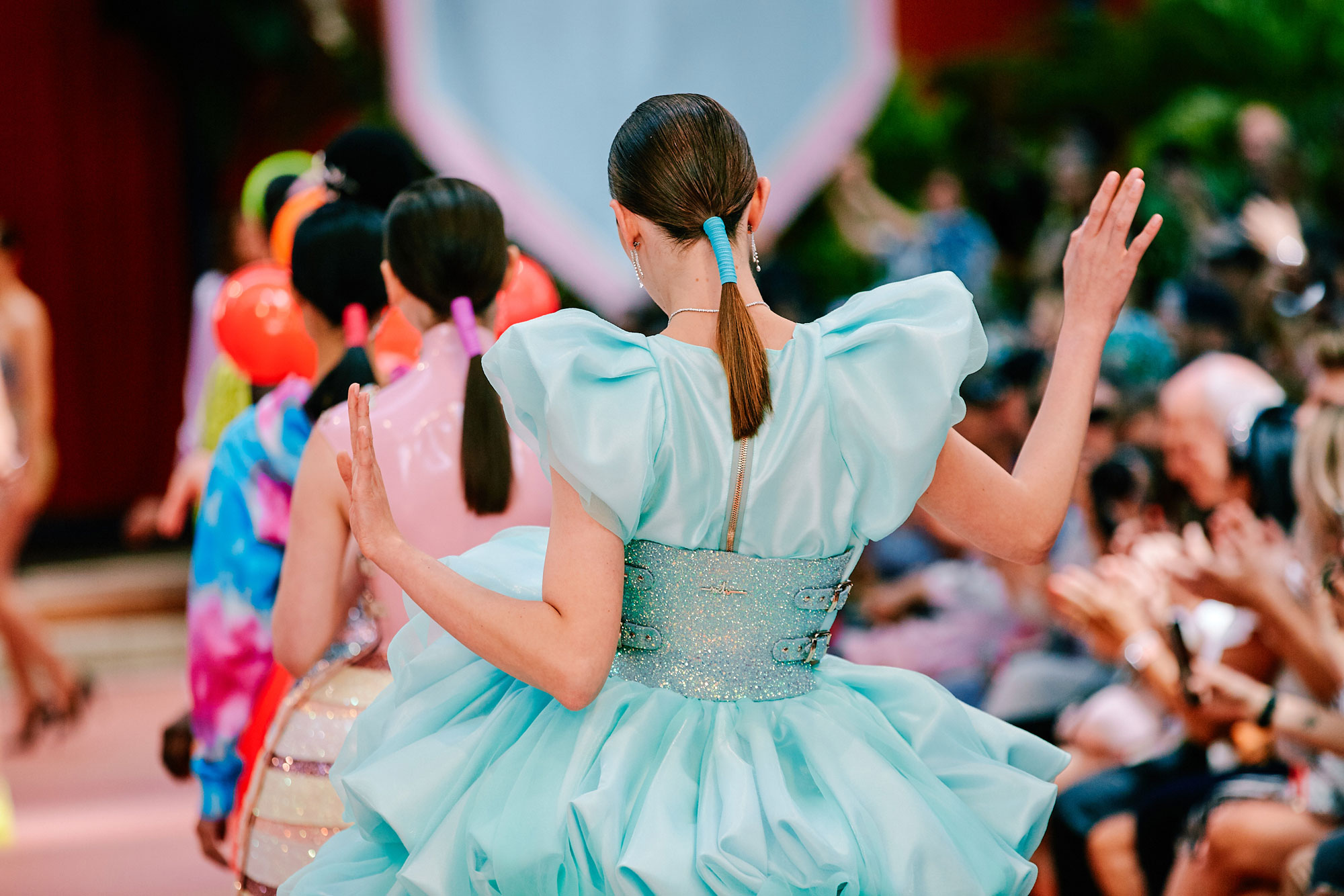Golden Hairpiece & Neonband & Sleek = Fashionweek-Look